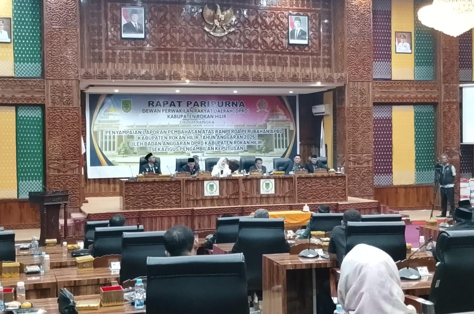 Rohil,Zadanews.com — Selasa 30 September 2025 ,Dewan Perwakilan Rakyat Daerah (DPRD) Rokan Hilir (Rohil) gelar rapat paripurna penyampaian laporan pembahasan atas ranperda perubahan APBD-P Rohil 2025 oleh Badan Anggaran (bangar) DPRD, sekaligus pengambilan keputusan dipusat kan Kantor DPRD Rohil Jalan Lintas Pesisir Batu Enam, Bagansiapiapi, Rohil, Provinsi Riau. Rapat paripurna DPRD Rohil yang dipimpin langsung Ketua DRPD Rohil Ilhammi S.Tr.Keb didampingi para wakil ketua DPRD, dan Anggota DPRD 38 orang terdiri dari unsur fraksi-fraksi yang ada di DPRD Rohil. juga dihadiri Bupati Rohil H. Bistamam dan Wakil Bupati Jhonny…