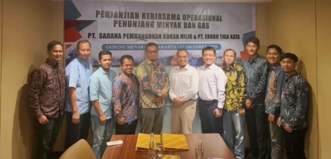 Jakarta,Zadanews.com — PT Sarana Pembangunan Rokan Hilir (PT SPRH) dan PT Erugo Tiga Kata, pada hari ini menandatangani Perjanjian Kerjasama Operasional Penunjang Minyak dan Gas.