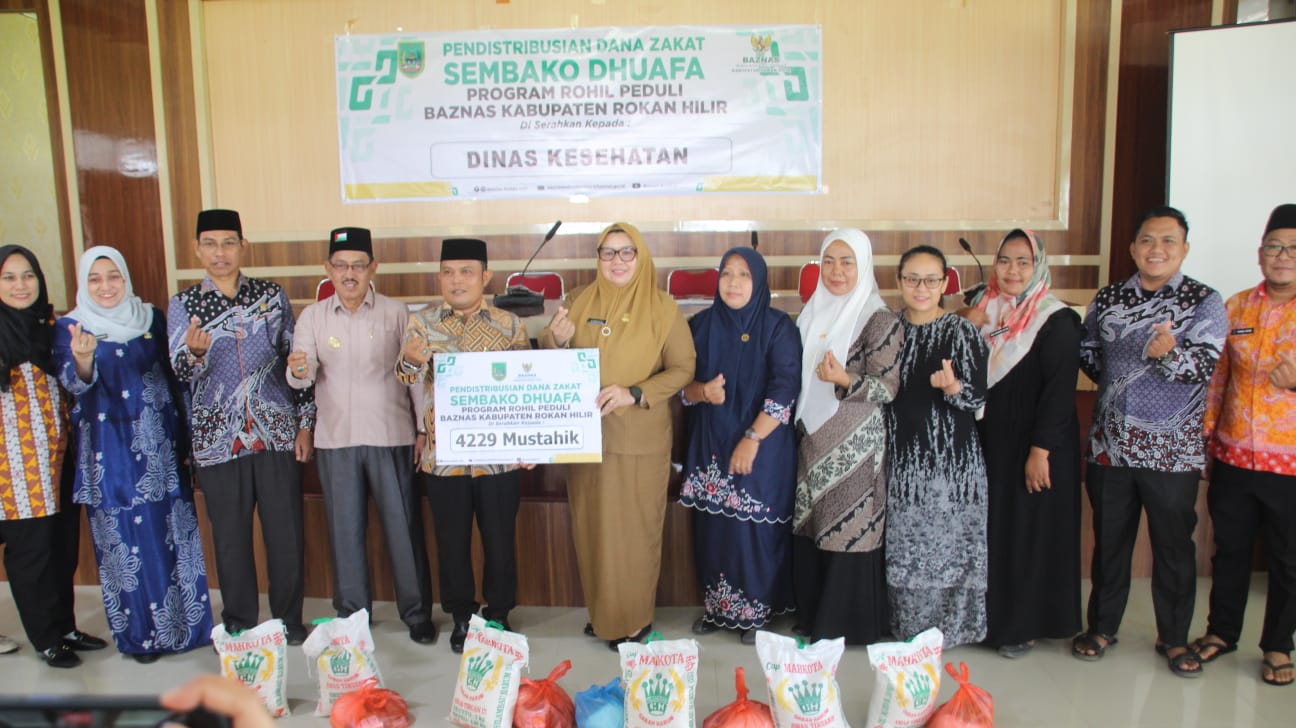 Rohil,Zadanews.com — Badan Amil Zakat Nasional (BAZNAS) Kabupaten Rokan Hilir bekerja sama dengan Dinas Kesehatan (Dinkes) Rohil menyalurkan bantuan zakat berupa sembako duafa kepada seluruh Puskesmas yang tersebar di setiap kecamatan di Kabupaten Rokan Hilir.