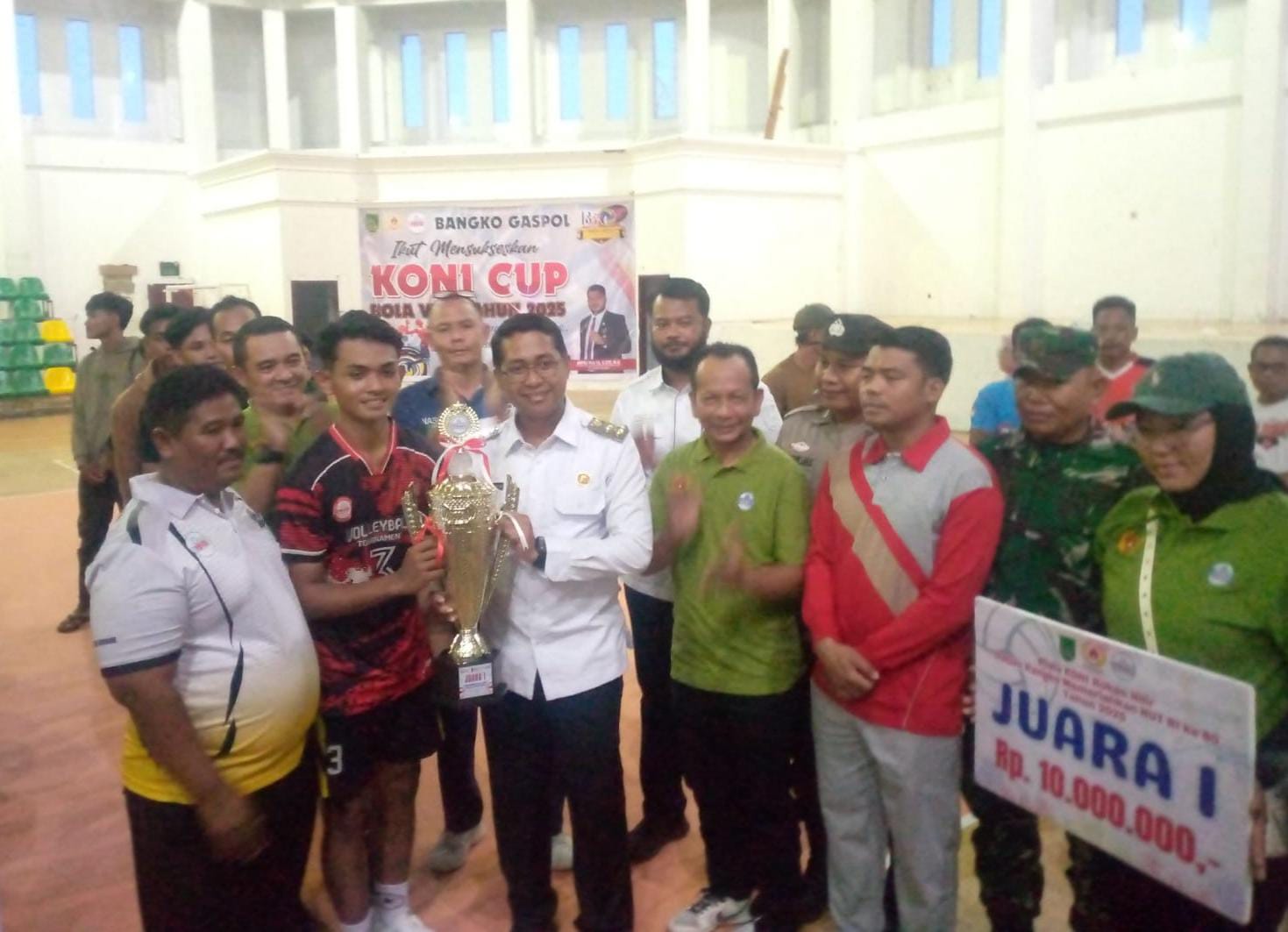 Rohil,Zadanews.Com – Wakil Bupati Rokan Hilir, (Rohil) Jhony Charles, BBA, MBA, menghadiri dan sekaligus penutupan final Turnamen Bola Voli KONI Cup 2025 Laga puncak mempertemukan tim TBS melawan PT. JATIM dan disaksikan ratusan penonton yang memenuhi arena dengan sorakan meriah, kegiatan dipusatkan di GOR Batu enam, Rabu sore (13/08/2025).
